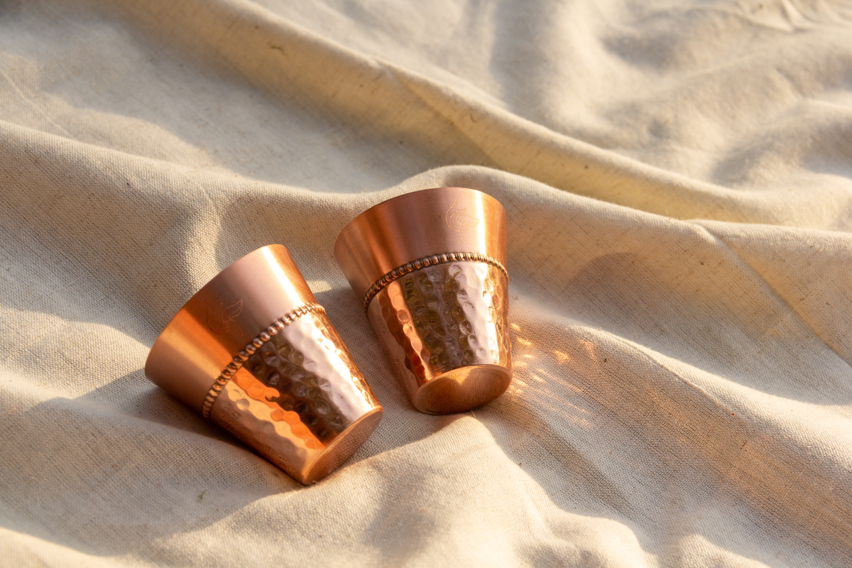 Rastogi Handicrafts Copper Glass/Vessel/Utensil Design Diamond Cut Shape (Set of 4Glass)